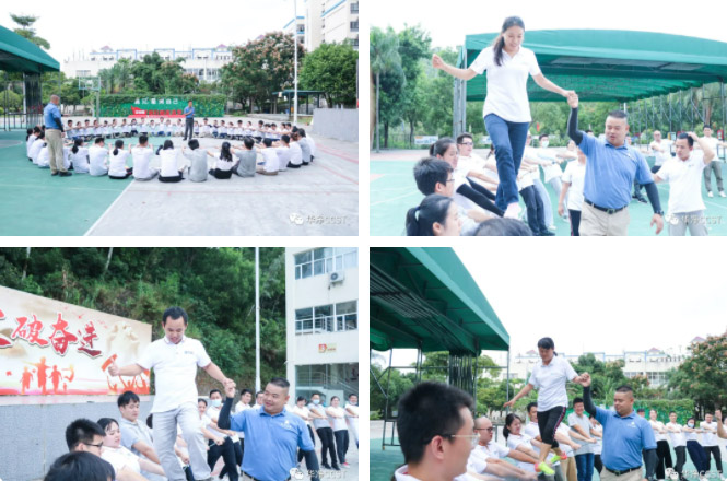 拓展训练以小队为单元,完成“齐眉棍”、“盗梦空间”、“联欢晚会”、“信任背摔”、“求同存异”、“时速极限”、“七巧板”、“动力绳圈”等各项活动。